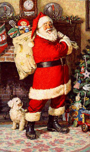Santa’s original wardrobe was a bishop’s robes, but he somehow morphed into a jolly fat man wearing a red suite.