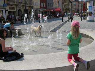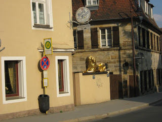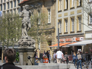 Bayreuth, like many towns in Germany, has a walking district. But it was hard for me to distinguish the walking districts from the driving districts. Both the sidewalks and roads had similar paving stones and even in the driving districts, there was often more foot and bicycle traffic than cars.