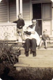 In the ones I’ve gone through so far, the most heart wrenching is a picture of my grandfather sitting on the front porch holding his three month old daughter. My dad and his brother are standing on either side of him, looking somewhat confused. My grandfather looks sad and weary. With good reason. His baby girl was dead and had been for several hours.