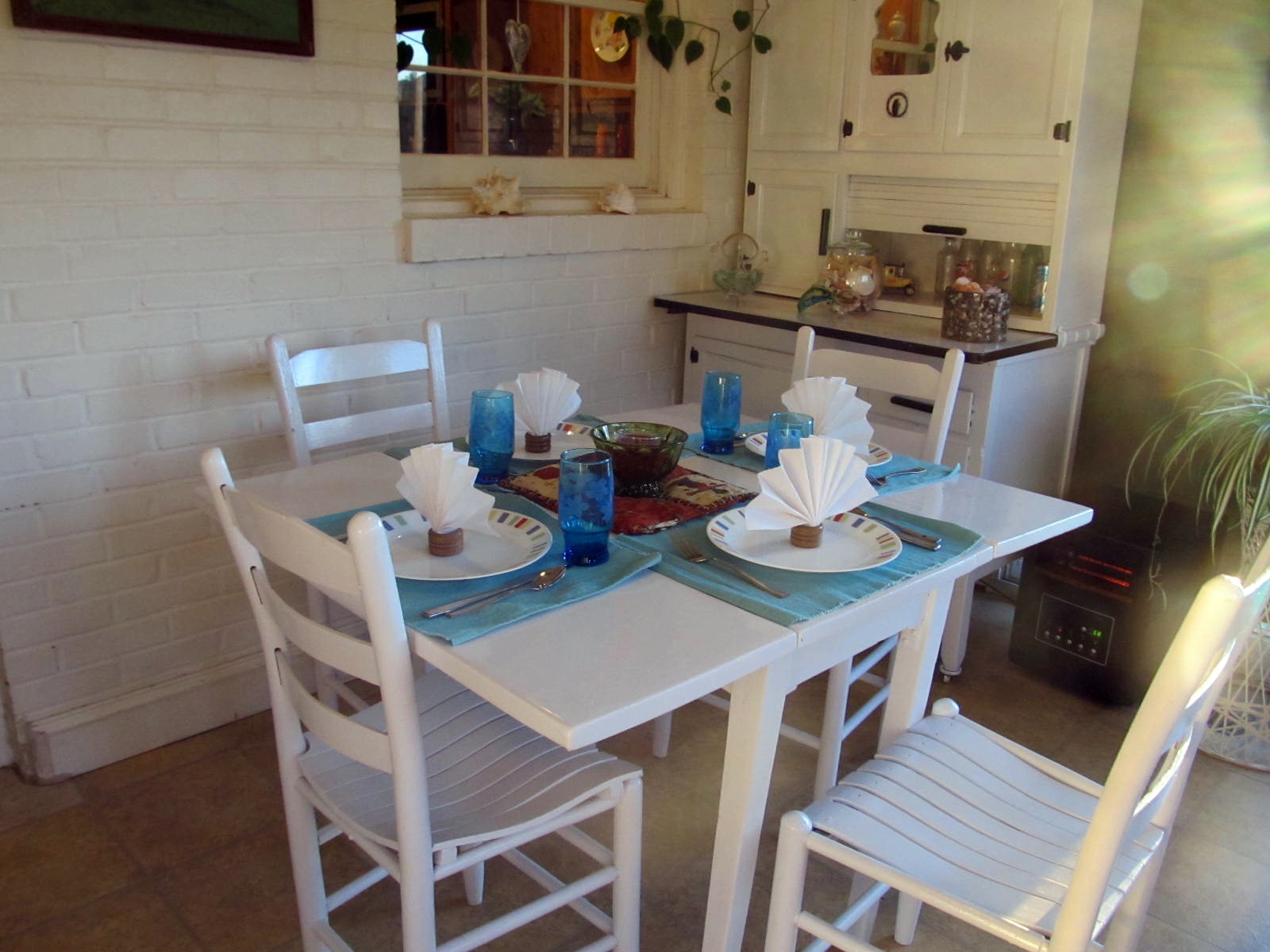 I have a dining room, but it’s more of an eat-in kitchen. No wall separates the kitchen from the dining room–just a bar. It’s nice for those informal meals because the room is big enough for everyone to eat together. But for larger gatherings when I want to pull out all the stops and serve Southern style the way my grandmother did, it would be nice to have a large, old fashioned dining room like hers.