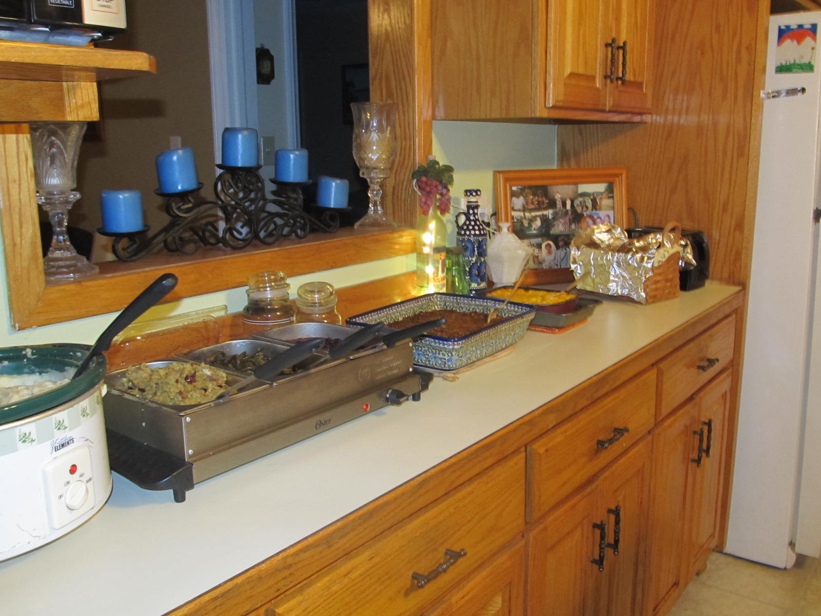 Of course, there were a few differences in my meal and the ones my grandmother served. Although I had under twenty people dining, neither my table nor my dining room are big enough to place serving pieces on the table, so the food was set out buffet style on the counter. And, there was wine, something I don’t remember my grandmother EVER serving…although, she did make a mean rum cake.