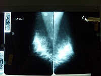 In June 2007, I had my screening mammogram. My friend and sister mammographer, Linda, “squeezed” me in after we’d finished our patients for the day. This was back when our hospital still had film screen, so the x-rays dropped from a processor. I pulled the curtain in the tech area and was standing in front of the view box in my pink floral cape when Linda began hanging the films. The Left CC (cranial-caudal–the film taken from the top of the breast) fell from the processor first. It looked fine. No different from the year before. Then the Right CC fell out. It looked–different from the mammogram I’d had 18 months earlier.