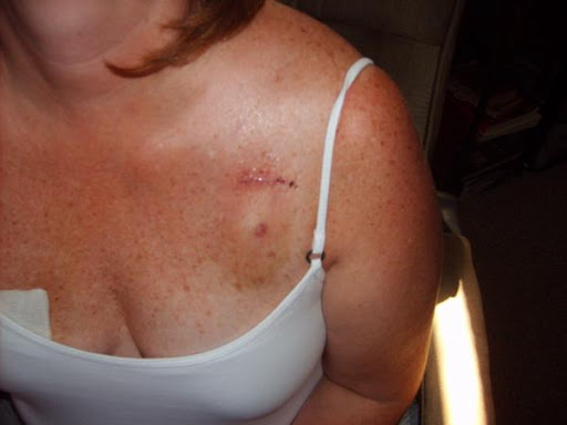 Although my cancer was Stage 1, I had a lumpectomy where more tissue was removed from the breast to ensure “clean” margins and I had to have a lymph node biopsy to prove the cancer hadn’t spread beyond the breast. Four nodes were removed and all four were negative. But because of my triple negative status, I had to have chemo and radiation. I had the chemo first.–two chemo drugs, Adriamycin and Cytoxan once every other week for eight weeks. Then after an MRI to prove there were no more lesions or DCIS, I was given the choice of a mastectomy and radiation, or radiation treatments five days a week for 6 weeks.