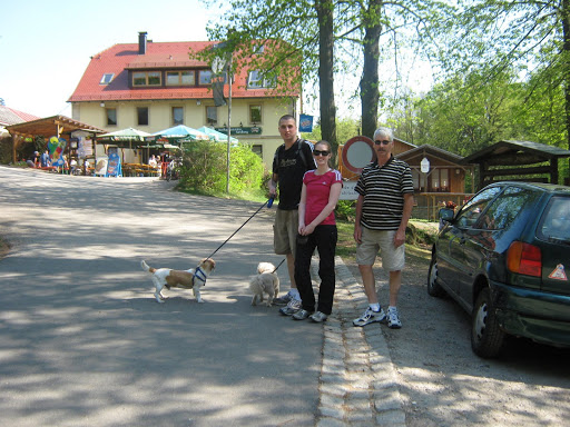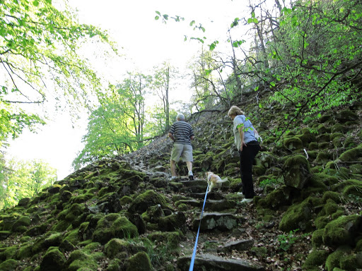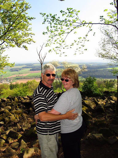 But, the day wasn’t a total loss. After our misguided adventures across the Czech border, we went back to my daughter’s house, changed clothes, grabbed their two dogs, and drove about four miles or so to Roucher Klum, the small mountain visible from the upstairs window of my daughter’s house.